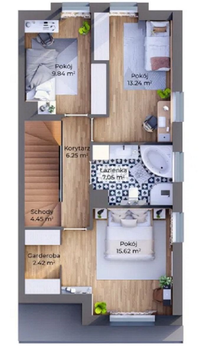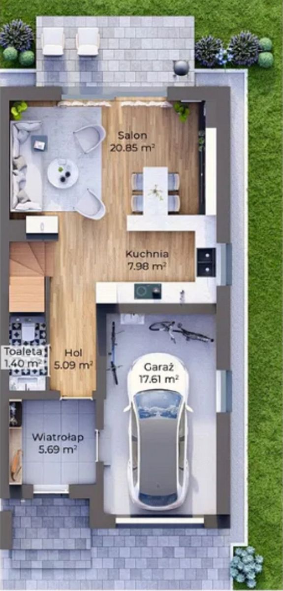 Powierzchnia użytkowa budynku wynosi 117.49m2.